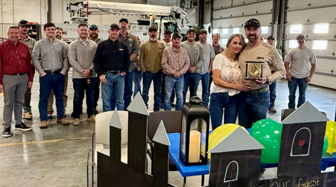 Senior lineworker for SWEPCO, Blake, received the AEP Hero Award after he stopped at a fiery crash. He used his fire extinguisher to free a driver trapped by a jammed leg, pulled the man to safety and fought the spreading blaze until emergency crews arrived. His actions saved a life and prevented further damage. Blake's wife Melissa and Aaron, the oldest of their 10 children, were in attendance when he received the award. His team celebrated him with a seafood boil. Read more.